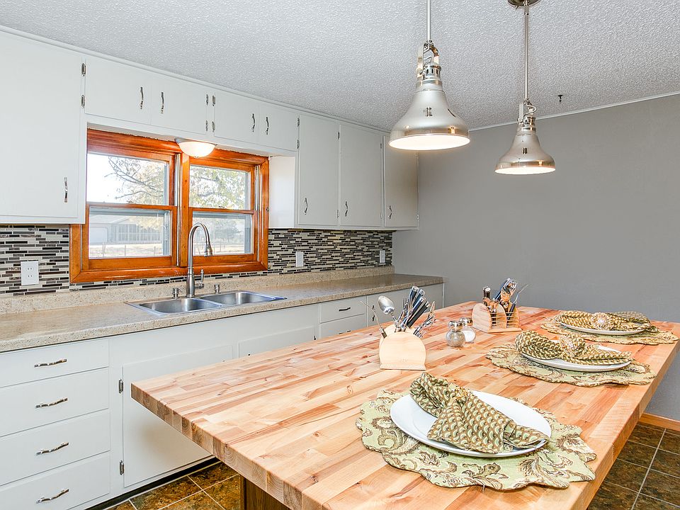 Ranch home in the Maize school district on almost an acre lot. This home has been beautifully maintained with 4 bedrooms and 2 bathrooms. The kitchen has a 6 ft. butcher block island and has over 300 sq. ft. of room. The family room is 295 sq. ft., and the living room is almost 400 sq. ft. all kinds of space to entertain. The washer and dryer stay with the home. I have classified the home as having a cellar because it is only for storage and has over 900 sq. ft. of space to store belongings. The home also has a carport big enough for 2 cars, a storage building, and newer roof.