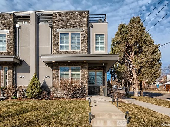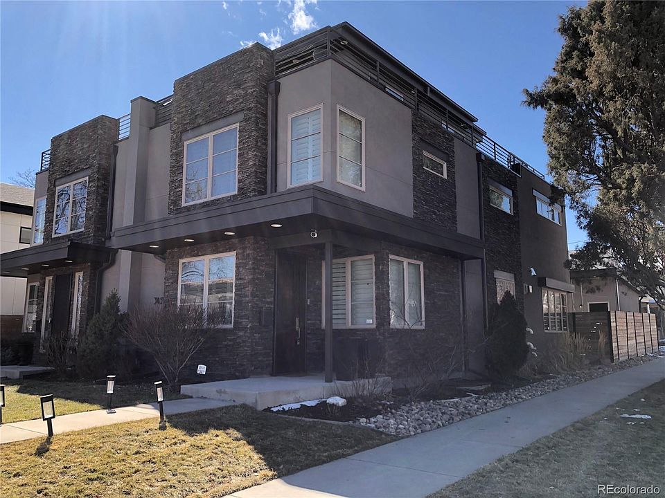 SHOW STOPPER! TAKE YOUR BREATH AWAY! The ONE you have been waiting for! SIZZLING HOT IDEAL LOCATION IN THE HEART OF LOHI! STEPS TO EVERYTHING- Perfect walk to all the best shopping, eateries, galleries, parks, bars & coffee. The best in city life that LOHI & Downtown Denver (across the bridge) have to offer. MASTERPIECE! SLEEK*CHARMING*STYLISH HALF DUPLEX. LIVES LIKE SINGLE FAMILY HOME! APPOINTED WITH SMASHING HIGH-END FINISHES! Poised on a beautiful corner lot, this wonderful home features: Open floorplan* Huge windows allow natural light to stream in *Gleaming Acacia real hardwood flooring* Designer smooth textured walls & custom paint* 2 handsome fireplaces (double sided to family/dining & primary bedroom)* Built-in speakers*Smart home features* Custom plantation shutters throughout*Open iron hand railings* Sleek designer lighting*OWNED SOLAR! The open concept Chef's Kitchen is gorgeous w/sparkling premium granite counters*Custom glass front cabinetry*Glass subway tile backsplash*High-end stainless appliances*Gas range w/hood*Elegant separate mini-frig. The lovely dining has a stunning art-like centerpiece light. The wonderful primary bedroom has high ceilings, cozy fireplace and an en-suite luxury 5piece bath w/soaking tub, river-rock shower, double sinks and walk-in closet. Convenient upstairs laundry. ASTOUNDING 3RD FLOOR FLEX AREA IS HIGH ATOP THE TREES. It boasts an office/media/gym area and you will love the wet bar! This sensational BONUS AREA opens to an AMAZING WRAP AROUND DECK overlooking the beautiful tree-lined street and colorful VIEWS of the downtown city skyline. Come watch the fireworks over Denver! The finished basement has a guest suite w/full bath, large recroom and fantastic buit-in wet bar w/frig. This space is great for entertaining or a mother-in-law suite! LOVELY BACK OUTDOOR SPACE W/GARDEN is perfect for entertaining & pets! Spend summer evenings barbecuing under the stars. Enjoy luxury & entertainment!