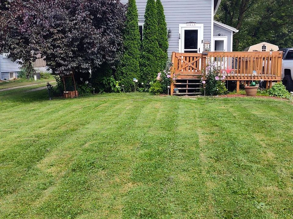 Welcome home to this tastefully updated and charming 3 bedroom 2 bathroom bungalow. Home has so much to offer including a spacious family room that flows into the large eat-in kitchen with tile backsplash, expansive cabinetry, and stainless steel appliances. enjoy the convenient main floor laundry room; large enough for extra storage space! Updated main floor bathroom with modern finishes and new vanity. The second floor features an additional full bathroom and 2 more bedrooms. Enjoy your morning coffee and evening cookouts on the spacious deck. New wood privacy fence 2022, and deck with pergola great for entertaining guest. New Central Air unit with a 5 year warranty. Additional storage in the shed for toys and lawn equipment! This one won't last long! Schedule your showing today! BTVAI
