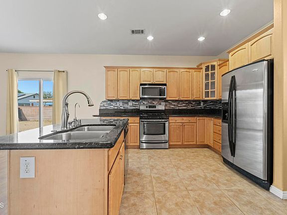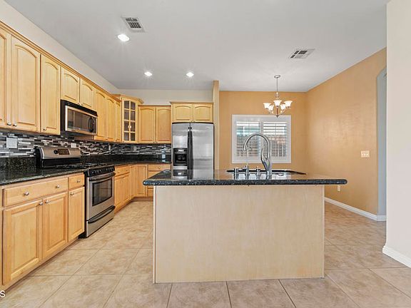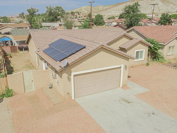 A 2007-built single story home with PAID OFF SOLAR?! This is a deal you can't pass up! As you enter you'll notice the open floorplan perfect for entertaining, the upgraded flooring, granite kitchen counters with stainless steel appliances and so much more! The huge master bedroom features a large walk-in closet, shutters on the windows and a large double-vanity with upgraded counters. The 2nd and 3rd bedrooms are located on the other side of the home and split by a full-size hallway bathroom. Additional features include front yard desert landscaping, a freshly tiled living room fireplace, indoor laundry and shutters throughout most of the home. Don't miss your chance to make this your new home! Schedule your own private showing today! (Some photos have been virtually staged)