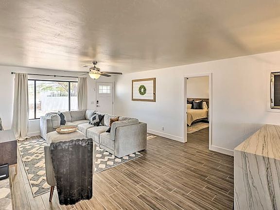 Oversized, lake view, drive-around flag lot= LOTS of Privacy! Beautiful, forever lake and mountain views from your private slice of Havasu! Fully refreshed 3 bedroom, split-floor plan home. Step into this serene luxury with this completely remodeled in 2021 home, offering lake and mountain views. Available for 90 day Minimum rentals this FULLY FURNISHED home ensures a seamless comfortable stay from day one. This home includes 3 bedrooms and 2 bathrooms. The home is less than 5 miles from the beautiful Havasu Riviera Marina, conveniently located on the South Side of town close to Basha's and the new Wild Coffee location.