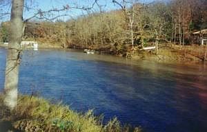Beautiful acreage with approximately 400 feet of cove frontage. Wide cove buy not deep water. Land is rough, but quite beautiful with all the tree and hills. The land lays on both sides of the county road and waterfront is on east or right side. Land buts against Dinosaur Resort on north. 2 10 acre tracts back to back. Water well and septic, old mobile, and 2 sheds are located near the water.