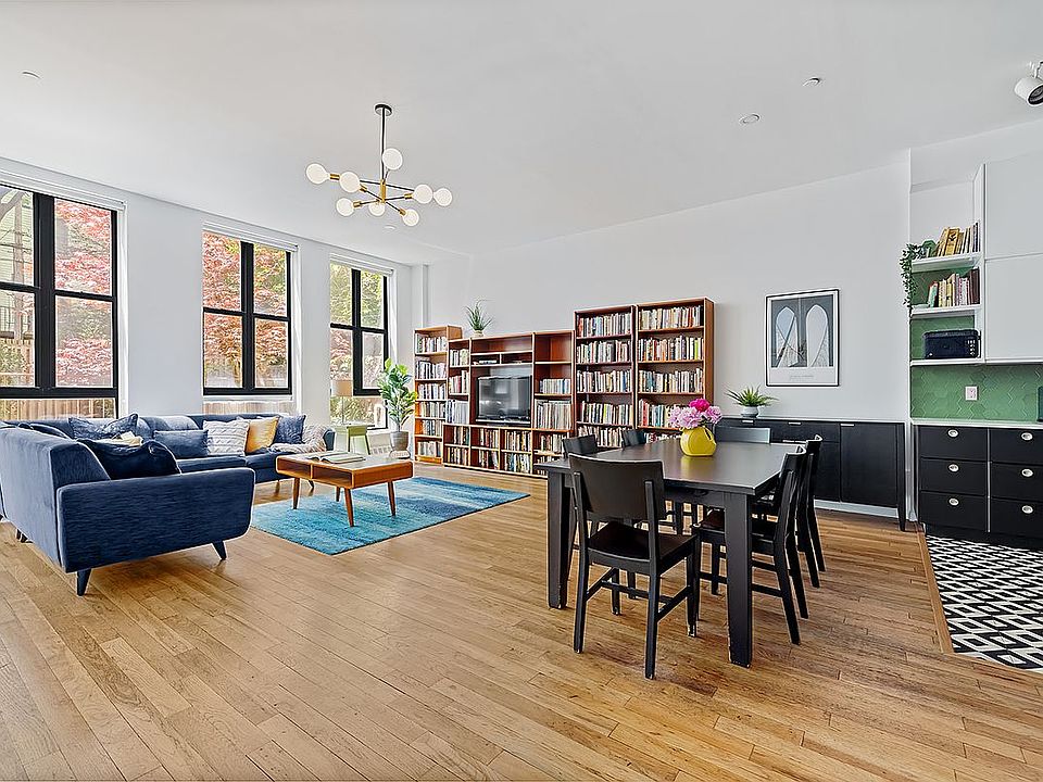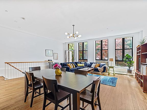 Offering approximately 2,000 square feet of living space and two distinct outdoor entertaining areas, this bright and spacious condominium home is a unique find in charming Park Slope. Greeted by soaring 10-foot ceilings, the main floor is framed by oversized windows, truly grand room proportions, a chic designer kitchen and ample storage. Downstairs the recreation space opens to a bright and airy patio area connecting the space to plentiful light.