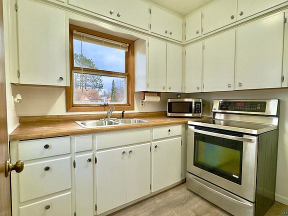 Charming 2-Bedroom Home on a Corner Lot - Perfect Location! Welcome to this recently updated 2-bedroom, 1-bathroom home, ideally situated on a quaint corner lot. This gem boasts new vinyl plank floors throughout, ensuring durability and style. The heart of the home, the kitchen, features floor-to-ceiling cabinets and a brand-new stainless steel stove, perfect for culinary adventures. Just off the kitchen, the dining room invites warm gatherings with its new windows and southern exposure, allowing natural light to flood the space. The cozy living room, also with new windows, promises bright afternoons and relaxing evenings. As you enter the home, you'll appreciate the convenience of a front entry with a closet for all your storage needs. There's also a small rear entrance porch area for additional access and charm. Downstairs, the full unfinished basement offers ample space for storage and a dedicated laundry area. Recent updates include a new furnace and air conditioning unit, providing year-round comfort. The property includes a 1-stall garage, perfect for parking or extra storage. Located close to schools and shopping, this home provides easy access to everyday necessities and leisure activities. This charming residence is ready to welcome its new owners. Don't miss out on the opportunity to make it yours!