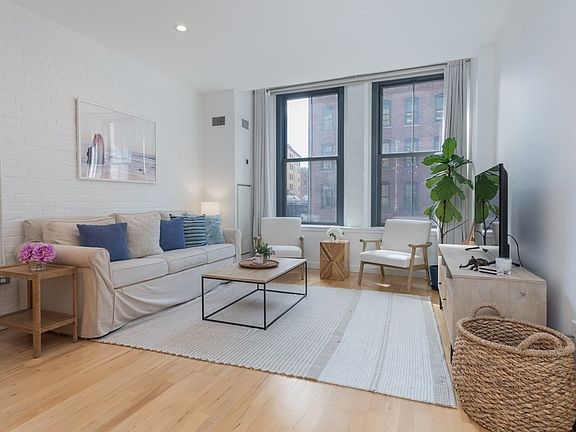 Chic & inviting 2 bed-2 bath condo in Fort Point’s iconic FP3 building. The open floor plan flows gracefully from the well adorned chef’s kitchen to the spacious living room, accented by 7 foot southwest, front facing windows. The kitchen offers contemporary cabinetry, Silestone countertops, stainless steel appliances w/ integrated dishwasher & marble style subway tile backsplash. The primary bedroom is outfitted with a custom, walk-in closet; the 2nd bedroom and/or bonus work-from-home space offers lifestyle flexibility. Key unit amenities: in-unit laundry, AC & 2nd full bath. The home is accentuated by high ceilings, gleaming light maple flooring, recessed lighting & fashionable window treatments. FP3 has long been sought after for its premier Fort Point/Seaport location, architectural uniqueness, 24/7 concierge, elevators, common roof-top deck w/ gas grill, and revolving art gallery space. In close proximity to Fort Point & Seaport hot spot restaurants, museums, shops & Trader Joe's