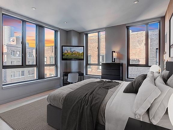 This corner unit at FP3 is one of only four homes with 3-bedrooms at this sought-after 24-hour concierge building. One not to be missed, filled with designer upgrades, this home features tons of natural light. Ideal for one seeking entertaining space & 3 full bedrooms, the layout provides for a spacious open concept kitchen & an oversized living room with space for formal dining. Kitchen upgrades include an oversized island with a wine cooler, stone countertops, tile backsplash, high-end appliances, & top-grade cabinetry. 8-inch plank hardwood floors in a whitewashed hickory finish throughout. 3 spacious bedrooms all include great proportions & ample storage. Lutron motorized shades in primary & living room. California Closets. Stunning designer bathrooms have all been upgraded & are appointed with top-notch imported finishes & fixtures. The walk-in laundry room is an added bonus. Rental parking is available. Common outdoor space with grilling. Must see! No smoking, no pets, and no students. Tenant to pay electricity utility, cablet & internet, and renters insurance coverage. Inquire for pet accommodation to be considered on review.