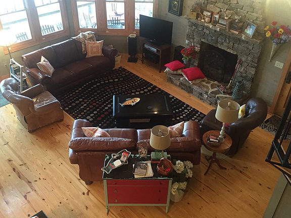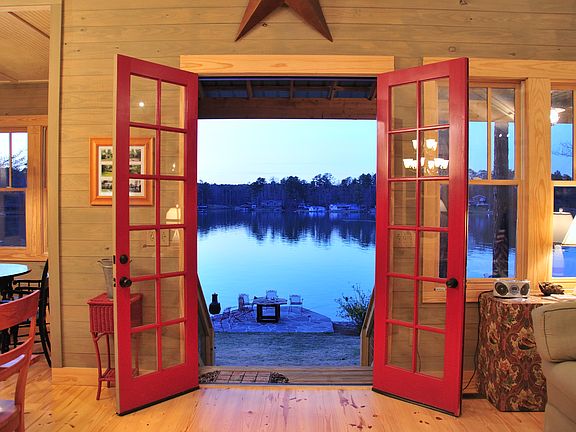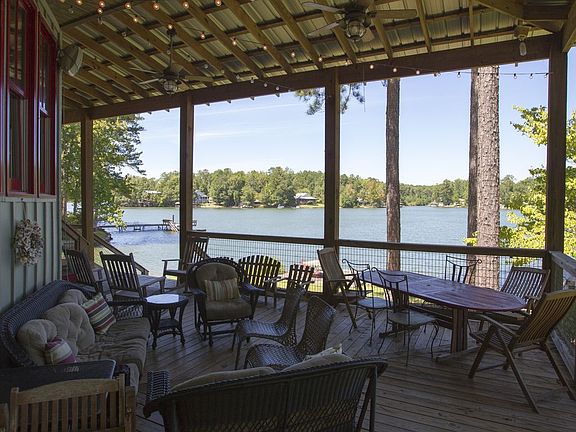 Lake Home located on Lake Martin in Eclectic, Alabama. House is 4 BR/3.5 bath with sleeping loft, sleeping 19 people as presently configured. Low country style with deep wrap around porch, Hardie siding, dimensional shingle roof on main part of house, and metal roof over porch area. Interior is "lake house" design with pine floors, pine walls, and wood burning stone fireplace in great room. Spiral stair connects great room with upper level sleeping loft which sleeps 7 and has 1/2 bath. Kitchen opens into great room area/dining area with ample room for farm table and smaller table in bay window area. Kitchen features hickory cabinets with black granite tops for island; oak cabinets with Alabama White marble in remainder of kitchen. Side/side refrigerator, dishwasher, gas Five Star Range and vent hood are stainless steel. Cooking porch is located adjacent to kitchen and contiguous with wrap around porch. House has two heat pumps, ceiling fans in great room, porches and bedrooms, tankless gas water heater, and alarm system. Separate laundry room with spare refrigerator/storage. Exterior features are two bay covered parking for autos/boats, garage and rear area storage, and outdoor shower/dressing area. Lot has water side stone patio, large pier/floating dock with boat cover/lift, and boat ramp.
