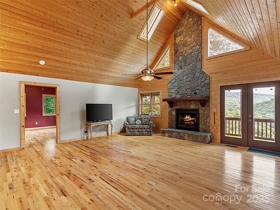 Step into peaceful tranquility with this beautifully maintained, single-level 2 bedroom, 2 bathroom log-sided retreat. Perched to capture breathtaking mountain views, this home offers the perfect blend of rustic charm and modern luxury. The open floor plan immediately welcomes you with soaring tongue & groove pine ceilings and an atmosphere so warm, you'll feel instantly at ease. Imagine cozy evenings beside the floor-to-ceiling stone fireplace, casting a warm glow across the living space. Cooking is a delight in the modern kitchen, featuring granite countertops and stainless steel appliances. The thoughtful split-bedroom layout ensures privacy, creating a true escape in the spacious primary en-suite. Natural light pours in through large windows and skylights, keeping the home bright throughout the day. A convenient 2-car garage provides easy access and storage. Location couldn't be better: you're just 10 minutes to Burnsville for daily needs and 1 hour to Asheville. Adventure is on your doorstep, with the Blue Ridge Parkway, Mt. Mitchell State Park (the East's highest peak), and the Bare Dark Sky Observatory all nearby. Come find your mountain escape! SHOWINGS by APPOINTMENT ONLY! NO Drive-bys!