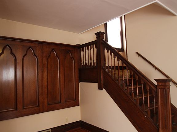 This 4 bedroom 1 1/2 bath home has been lovingly maintained. Beautiful natural wood work along with leaded and stained glass windows in the living and dining rooms. Roof is 4 years old (complete tear off with new decking). Basement is partially finished and has glass block windows and is plumbed for an additional full bath. Newer vinyl windows throughout most of the home. First floor laundry. Driveway replaced from road to back entrance of house 2 years ago. Two car garage with lots of storage space.
