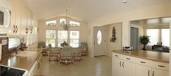 Absolutely must see this lakefront totally renovated home inside & out! Vaulted ceilings, 23 ft. kitchen w/lots of lovely new cabintery, Corian counters, 18 in porcelain tile floor, counter bar & spacious eat-in area w/Bay window. Bright 33 ft. living room w/lake views & sectioned den area w/gorgeous Maple Murphy bed for guests. Both bathrooms totally renovated. New items in 2010: Hardie plank concrete composite exterior siding made to withstand hurricane force winds, GAF upgraded shingle roof made to withstand 209 mph winds, large capacity air conditioner/heat pump with new ductwork and thermostat, hot water heater, plumbing in kitchen and bathrooms, leaded glass front door, gutters and downspouts, walkways around home, seawall, landscaping and double wide stamped concrete driveway with decorative medallion inlay.