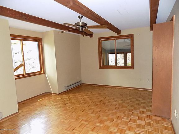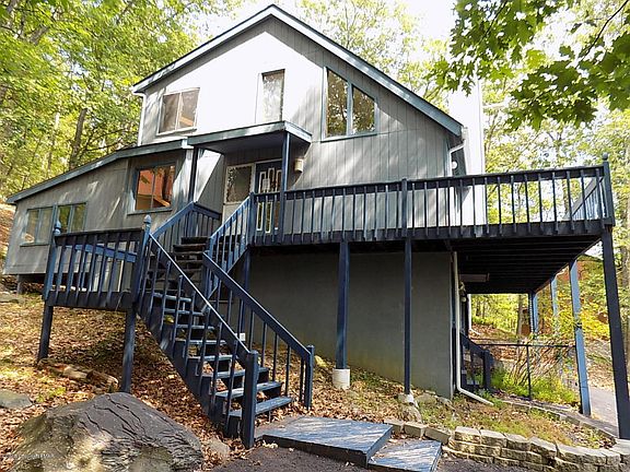Make The Discovery - This Contemporary Style Home With Wrap Around Deck Offering An Open Floor Plan and Master Bedroom and Bath On First Level, Along With An Eat In Kitchen With Center Island, Exposed Beams, Living-room Brick Surround Fireplace With Dual Sliders and Walk Out To Deck. Enclosed Porch With Ceiling Fan. Partially Finished Basement With Family Room Area, Paved Driveway Tiled and Laminate Flooring, Clean Lines with A Comfy Feel. Being Sold As Is