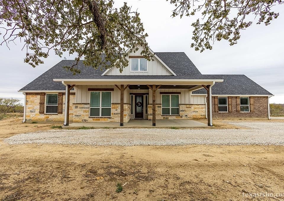 Gorgeous 4-Bedroom Retreat on 11.9 Acres! Enjoy 2 Bonus Rooms. Enjoy the serenity of nature as you sip on your morning coffee, watching the abundant wildlife on your private acreage. Home boasts a cozy gas fireplace, heated master bath, defog mirrors, two water heaters, and speakers on the front and back porch for all your entertainment needs. Incorporating smart design, the home is equipped with a 500-gallon propane tank, ensuring infrequent refills, and boasts two walk-in attic spaces for hassle-free storage. The property also includes a stock tank enclosed by 5-strand barb wire, and thoughtfully divided turn-out pastures. You can have 12 huffed animals on the property per HOA restrictions. As an added bonus, residents can enjoy separate Brazos River Common areas and boat ramps, providing ample space for recreational activities. Security is paramount, and the gated entrance offers peace of mind. Property is Ag-Exempt and still under the Builder's Warranty. Schedule a viewing today!