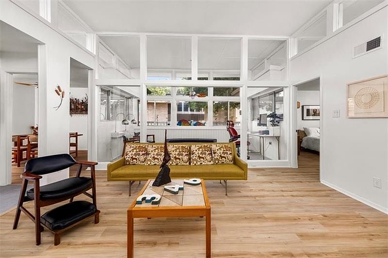 Sitting atop 285 at 400, with its perfect location in the heart of Sandy Springs, this extraordinary mid-century is much more than "Frank-Lloyd-Wright-inspired". This flat was designed by Wright's final apprentice, renowned MCM architect, Robert Green. Entering this uniquely renovated home, you will immediately be impressed with the brightness and openness of this stunning space. The entire unit is flooded with natural lighting. The high ceiling of the living room space surrounded by clerestory windows, the massive glass panes enclosing the sunroom, and multiple sky-light features all contribute to the entire space being flooded with natural light from every angle. The open floor plan offers a barrier-free passage between the kitchen, living, dining, and sun rooms. There are two large bedrooms. Each offers ample closet space and each a private renovated full bath. Upgrades include brush stroke nickel porcelain tile, high quality waterproof luxury vinyl plank flooring, and upgraded appliances - even PH reverse osmosis water system for both water and ice. Outside, a short stroll away, relax and unwind in the salt water swimming pool. Pleasing landscaping, outdoor lighting, mail center, and reserved parking complement the handsome MCM architecture. The location is unbeatable: offering the best of shopping, grocery stores, restaurants and bars. The brand-new Sandy Springs City Center is amazing. With quick and easy access to 285, 400, and 75/85 you will be a very short drive away from so many wonderful cities like Roswell, Marietta, Dunwoody, and Buckhead. As well as parks and venues galore. Learn more about architect Robert Green who designed this stunning space by googling "Architect Robert Miller Green" or by reaching out to the listing agent.