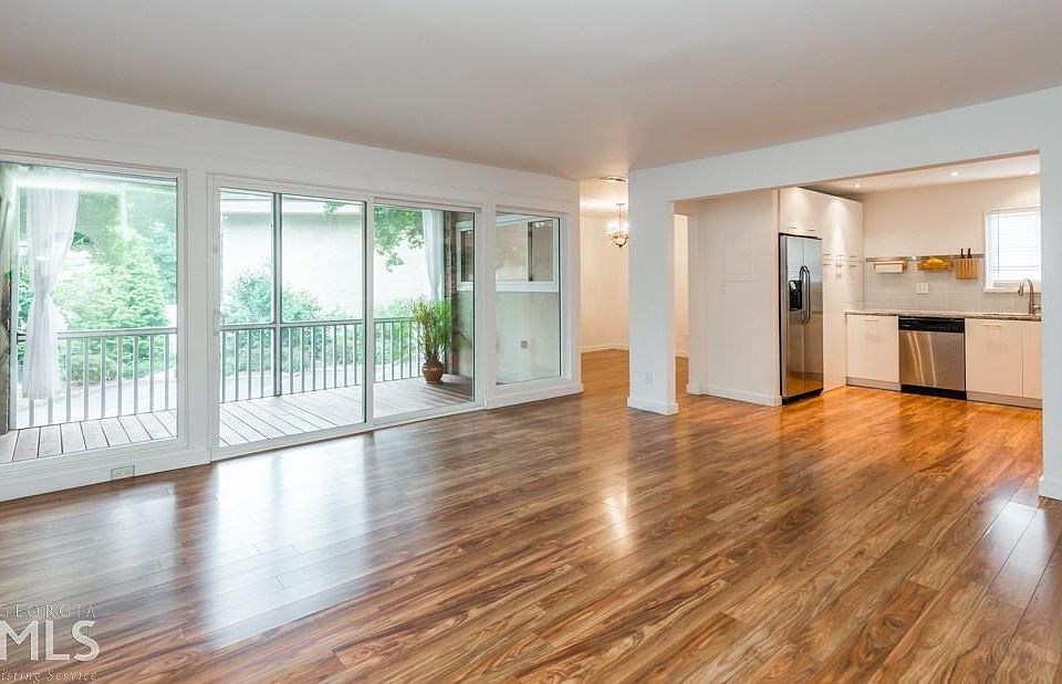 The one you've been waiting for! Renovated and move-in ready MCM Gem designed by Frank Lloyd Wright apprentice Robert Green. 2015-16 RENO includes: NEW Open floor plan, NEW Sleek Modern Kitchen with W/D, New Flooring, NEW Master Bath, NEW Double-pane windows AND an 8' Sliding glass door! Separate Dining room, Great natural light. Spacious bedrooms and closets. LEAVE THE CAR AT HOME and walk to Endless shopping and Restaurants, Allen Park, Lake Forest Elem, Lowes + more. Gated community. Low HOA includes Water. Super convenient location- Minutes to Marta, 400, I-285.