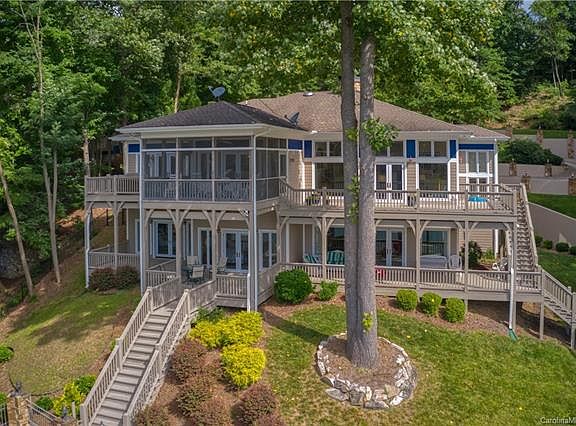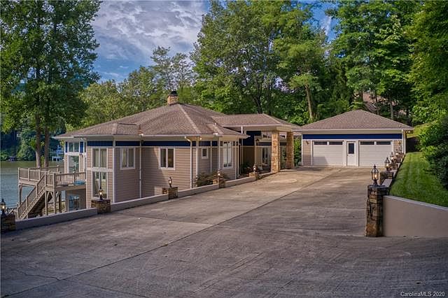 STUNNING LAKEFRONT RETREAT IN THE HEART OF DOWNTOWN LAKE LURE! MOUNTAIN AND LAKE VIEWS WITH TWO LEVELS OF DECKS, SCREENED PORCH, DOUBLE BOATHOUSE W/ LIFTS & HUGE ROOFTOP DECK. SOARING WOOD CEILINGS IN THE MASSIVE GREAT ROOM WITH WINDOWS GALORE! TWO STONE FIREPLACES, MASTER & LAUNDRY ON MAIN. HUGE BONUS ROOM WITH WET BAR AND LOTS OF STORAGE. BEAUTIFULLY LANDSCAPED, TWO CAR GARAGE WITH TONS OF PARKING & LEVEL HOME ENTRY.