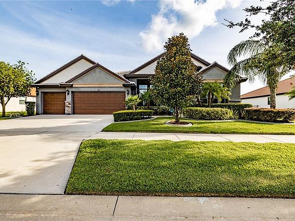 You'll know you've found the one once you step foot into this Immaculate custom pool home located in the Luxury Reserves section of the Amazing community of Harbour Isles. Ideally situated on an oversized 1/4 acre lot with a pond view, this home has plenty of room to roam. This 4/3 gem with an office/den and bonus room boasts a spacious 2900 sq ft offering a spectacular split, open floor plan, and a full-size three-car garage. Upon arriving at the home, you will notice all the upgrades galore! From the exterior, you'll appreciate the beautiful tile roof, privacy fencing, and luscious landscaping. As we enter the home, you'll instantly fall in love with the Crown molding, Tray Ceilings, Solid wood 42-inch cabinets, Ceramic tile throughout the main parts of the house, and all wet areas. The kitchen is a chef's dream boasting all Stainless Steel Appliances featuring a built-in Double Oven, cooktop, backsplash, and beautiful granite countertops. The outdoor oasis is a dream come true! Relax in your pool watching the sunsets in the evening. You'll feel like your on vacation. The backyard pad features an outdoor custom kitchen that awaits the barbeque master in the family, a Sunbrite outdoor TV, and a Fully-screened custom saltwater pool with color-changing lights and a heated spa for those stressful days. Let's not forget about the outside travertine stone flooring that will leave you breathless! Harbour Isles offers walking trails, a basketball court, gym, volleyball, playground, community pool, and a storage area for your boat or RV all for a very meager yearly Hoa fee. Tampa, Sarasota, and Bradenton are only a skip away. And to top it off You're only minutes from Florida's amazing beaches and Disney! Call today to schedule your private tour.