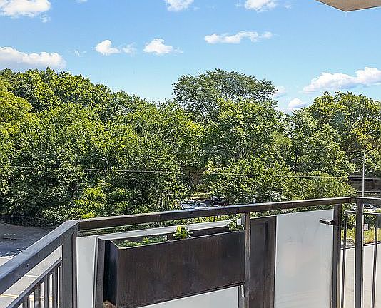 Inside this sun-kissed 1,660-square-foot home, tall ceilings soar above exotic Cumaru hardwood floors, a loft-like layout, and sunny windows on all four exposures. A gracious entry hall flanked by a coat closet and full guest bathroom ushers you into the gorgeous great room. Enjoy a generous footprint for seating and dining areas, or head out to your private balcony for morning coffee alongside treetop views of the Parade Grounds. The open kitchen is beautifully arranged with custom wood cabinetry, Cambria quartz countertops, and stainless steel appliances, including a gas range, French door refrigerator and a dishwasher.