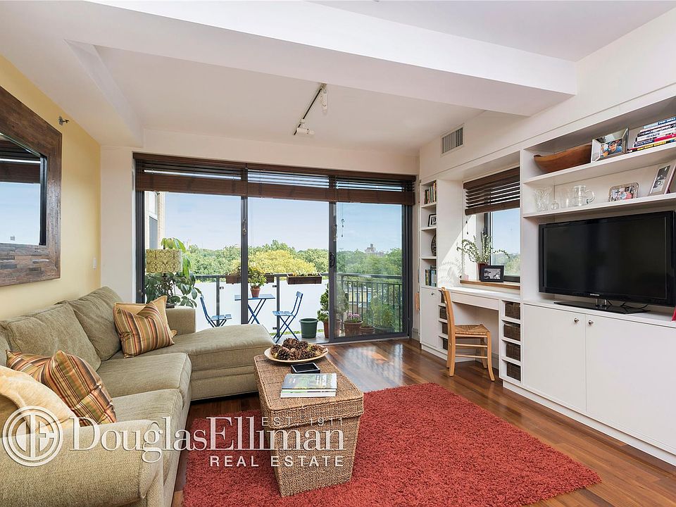 Wonderful opportunity to own a rarely available bright and sunny two bedroom, two full bath home with dual balconies. This unit on the 7th floor with its large floor to ceiling panoramic windows provides amazing open views of Prospect Park. It is in move-in condition, with beautiful hardwood floors, custom built-ins, stainless steel appliances, central air and a washer dryer within the apartment. The Park Circle Condominium was newly built in 2006 with a roof top deck, fitness room, playroom, common garden patio and indoor meeting room, parking in the building (fee) and a 24 hour security guard. Storage for a fee is available right next door. Situated in a prime location with access to the park and the tennis courts as well as a growing bevy of new restaurants and stores makes this haven an easy choice as your new home. A short distance to convenient transportation into NYC, under a half hour by car or on the F, G, B, Q trains. Tax abatement through to 2023