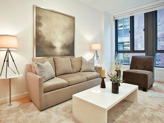 Large studio in the heart of Fort Point/Seaport Districts. The neighborhood of Fort Point is recognized as one of New England's largest artists' communities. This 698 sq.ft. studio is efficiently laid out with a formal entry foyer, distinct bedroom area & generously sized living space. The kitchen, features Silestone countertops & stainless steel appliances including a Bosch dishwasher and Fisher-Paykel refrigerator, central air, in-unit washer/dryer, high ceilings, and a wall mount TV. Building amenities offer 24/7 concierge, security, elevator, common roof deck with gas grill, common bike storage and a beautiful art gallery. Great location, walking distance to South Station, the Waterfront, Financial District, Downtown Boston, Auquarium. Some of the best restaurants in Boston are located steps from the building.