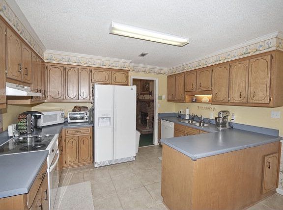 Private .65 acre lot! Recent upgra include roof, heat/air, hot water heater, newer kit appls! New blinds, security sys, new ceramic tile in kit & lots of fresh int paint! Owners ste w/2 closets, huge maba w/garden tub & sep shower! 2 attic pull down accesses 4 lots of storage space! Rocking chair frnt porch, deck, crwn molding & liv rm w/frpl! Flooring & kit countertop allowance w acceptable offer