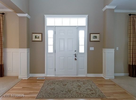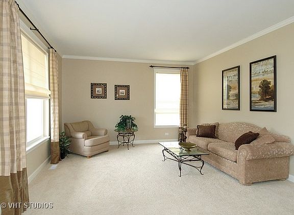 One of the best deals in the Burlington Central School (#301) District~Custom trim, wainscoting, molding, & hardwood flooring~Nine foot ceilings first floor~Soaring two-story foyer welcomes you into this sun-lit home~Airy kitchen w/breakfast bar/island, Corian counters, 42" maple cabinetry, Travertine stone back splash, butler pantry off dining room for great entertaining, & walk-in pantry~Adjacent two-story family room has floor-to-ceiling-windows to enjoy moonlit nights or sunny days, fireplace, and newer carpeting~Functional first floor den for at home work or relaxing~Custom mudroom w/cabinetry & bead-board seating area~Large master bedroom suite w/HUGE walk-in closet, & luxury bath w/whirlpool, separate shower, & dual sinks~Three more ample-sized bedrooms & hall bath~Everyone will love the second floor loft~Full basement waiting to be finished or for storage~Open space behind for added privacy~Walk to elementary & middle school~3 car tandem garage~Compare--Excellent Value!!!