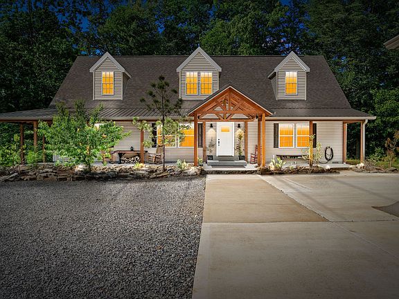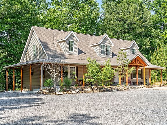 Privacy, freedom, and all the nature you need with this 2,880 SF home on 64 Acres! 3 bedrooms, 3 full bathrooms, office (could be 4th bedroom) + giant Rec room (with full bath). LVP flooring, textured wood countertops, extra-large kitchen island, large back deck, and an amazing covered front porch are a few of the homes many great features. Work in the detached garage or lose yourself in nature among the 9+ acre pasture, creeks, dirt bike track, abundant wildlife, miles of riding trails throughout the property, or the amazing hunting/shooting shed and range. Surrounded by other large tracks of land, adding to the serenity of this amazing property. Hitch up your boat and head to the Cumberland River/ Lake Barkley/ Kentucky Lake boat ramp which is only miles away. $2,000 paint allowance.