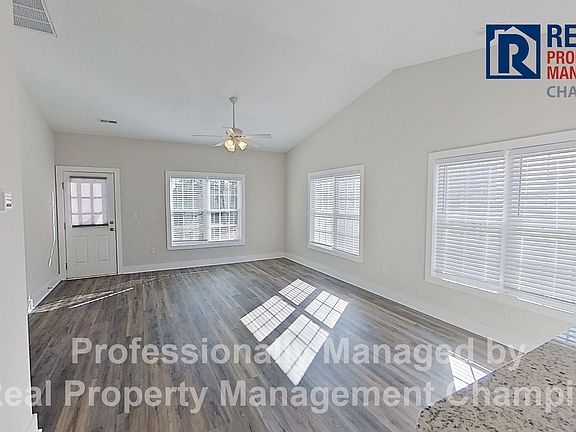 Charming 3 BD/2 BA home with an open floorplan and attached one-car garage located in Holly Ridge. The main living area is a bright and sunny space that features a vaulted ceiling with ceiling fan and opens to the well-planned kitchen. White cabinetry, granite counters, breakfast bar, full sized pantry and stainless-steel appliances make this kitchen a delight. The laundry room is tucked away behind a pocket door and comes complete with washer and dryer for your convenience. The split bedrooms allow privacy for the master suite which includes a decorative trey ceiling with fan, walk-in closet and private bathroom with double-granite counter vanity, step-in shower and linen closet. The two guest rooms share a hallway with full bath. Enjoy the outdoor space on the rocking chair front porch and side and back patios. Conveniently located between Wilmington and Jackson and close to area beaches. We are an Equal Housing Opportunity Management Company and abide by the term of the Federal Fair Housing Act. Pets allowed with prior approval and required pet fees. Aggressive breed list may apply. Contact listing agent prior to submitting application. No Smoking, e-cigarettes or vaping. All applicants over 18 years of age are subject to a background check, including criminal, credit, employment verification, and past tenancy.