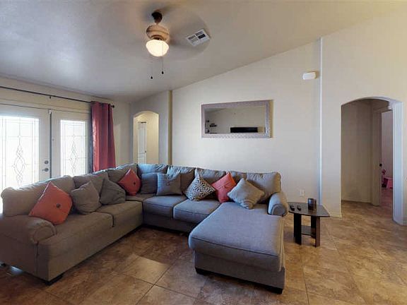 Lovely double-door w/glass enters immaculate home, fans in all rooms, tasteful decor; tiled master shower w/gorgeous granite thruout & backsplash in kitchen ready for entertaining, complete w/upgraded appliances incl mini-fridge for beverages. Corner lot w/2 RV access points-double gates on EACH side of home to backyard. Upgrades: outside half bath & attached storage room/wkshop; Xmas lighting outlets; 2 patio corner spot-lights; surround sound wiring inside & out; laundry room w/cabinets & utility sink!