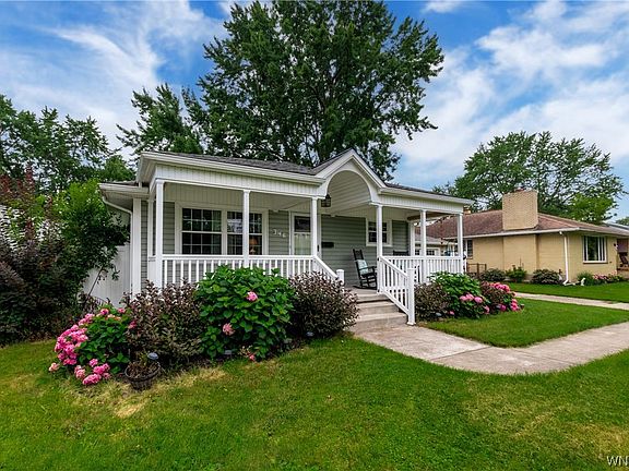 Adorable 3 bedroom Tonawanda ranch with the best front porch! Step into this lovely home where you'll be welcomed in to the inviting living room with wall-to-wall carpeting and the spacious eat-in kitchen is fully applianced and perfect for whipping up a tasty meal! This home features 3 bedrooms & one bath on the main floor PLUS imagine what you could do with the bonus space & additional bath in the full basement! Head outside to the large fenced yard with plenty of room to host BBQs or toss around a football this fall! Lovingly maintained by one family for over 40 years: Vinyl Fence '15, Arch Roof '10, Soffits & Gutters '10, Front Porch '10, Doors '09, Vinyl Siding '08, Furnace & AC '07, Vinyl Windows '05-'06, Garage Door '14, Security System '13, & more! Ample room & storage in the full basement & detached 1-car garage. Located close to all conveniences and situated across from Ellicott Creek, this is THE one for you! Showings begin immediately & any/all offers will be considered 8/22 at 12pm. Open House Sat 8/19 from 11-1. Welcome home to 346 Ellicott Creek Road - Let’s Move!