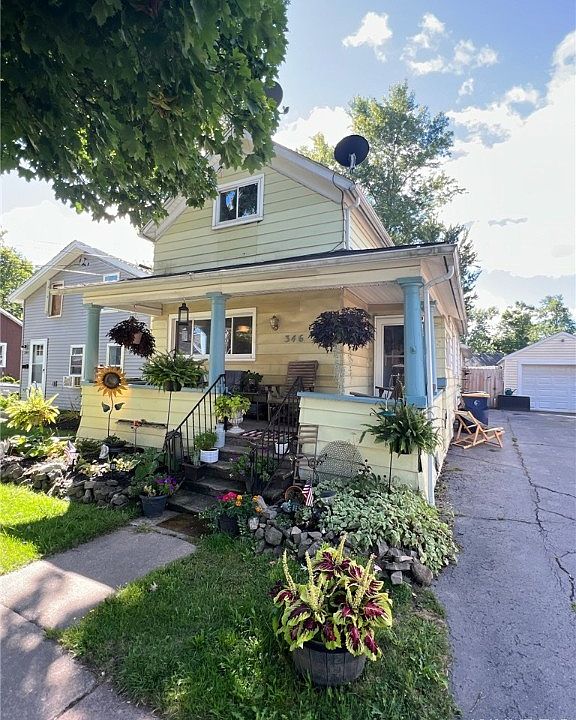 This cozy bungalow awaits its new Owner. This charmer features a semi-open Living, Dining and Kitchen Floor Plan. It also includes one bedroom and laundry on the first floor. Enjoy the built-in bookcases up the stairway, central air, and the detached garage. The backyard is newly fenced with an excellent patio space for your entertaining.