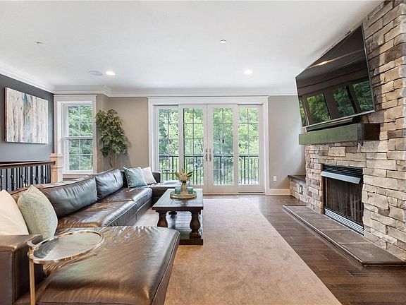 Elegance and luxury throughout this gorgeous END UNIT! One of the 2 units in plan that has extra large covered deck on 3rd flr level!! Deck has low maintenance flooring/railing, recessed lights and ceiling fan! Also, on 3rd floor is 4th BR, full bath and Family Room with wet bar (sink, dishwasher and mini fridge)! Finished Walkout Lower Level has lockers, a half bath, 2nd office or 5th BR with built-in desk and Murphy bed, workout room with glass door to lower stamped patio area with stone grill, fridge, trash! An entertainer's delight! Main level boasts hardwood floors in an open floor plan to Living Rm, Kitchen and Dining Rm with a LR balcony and a covered deck off of the Dining area! Bright Home Office w/built-ins and half bath complete main floor. 2nd Floor has Owner's Suite w/2 walk-in closets and luxury bath w/HEATED FLR, 2 add'l BRs, Hall bath, lrg linen closet, Laundry Rm. Sonos sound system on all flrs and outside. New carpet on all stairs. RH lighting! Blackout shades in BRs.