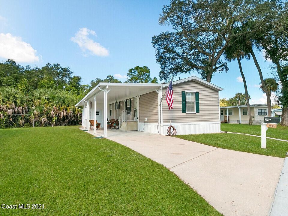 Pride of ownership shines through in this FURNISHED 2005 home in desirable Holiday Park. Original owners! Holiday Park is one of the few communities in Brevard with a 24 hour monitored gated entrance, The community boasts winding roads and grand oaks, an active clubhouse with not one but two pools. One is heated year round. Cable is included! The home offers a 2019 AC, 4 year old roof, Thermapane windows with hurricane shutters, split bedrooms, open concept living, inside laundry, beautiful 2019 vinyl plank flooring. Master bedroom has his/hers closets, private bath with walk in shower, large vanity and water closet. At the other side of the great room is the guest bathroom and the guest bedroom comfortable holds a queen size bed. Outside is a large covered carport, storage shed & RV lot