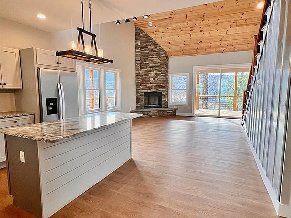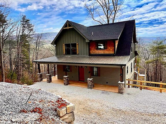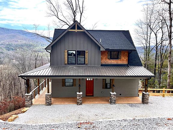 Designed for permanent or second home living, this 1630 sq. ft. home with touches of stonework, horizontal & vertical wood siding, barn wood shutters, cedar shakes and metal roof accents is under construction. This home by Moss Creek renowned for luxury rustic home & cabin design reflects the natural beauty of the setting. The open floor plan features window placement to capture the beauty of the NC Mountains and a kitchen that opens to a comfortable living area that flows to outdoor relaxing or entertaining. LFMC offersl underground services including sewer, water, power, and high-speed cable.