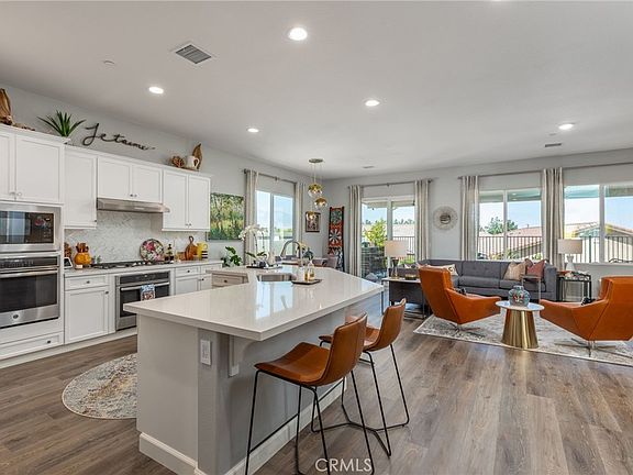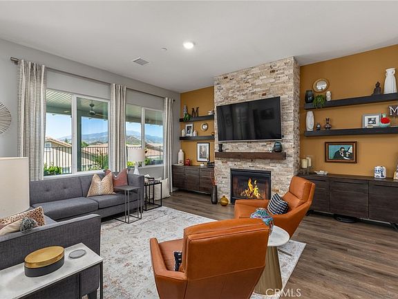 Immaculate Fresco Floor Plan Located in the Gated 55+ Senior Community of Four Seasons Beaumont. Spectacular Snow Capped Mountain Views. Rare 3 Car Tandem Garage. This Highly Upgraded Open Floor Plan Offers Two Bedrooms, Two Bathrooms, Den, Formal Dining Room, Oversized Master Bedroom Walk-In Closet and an Indoor Laundry Room with Sink and Cabinets. The Interior Upgrades Include: Kitchen Island, Quartz Counter Tops with Marble Backsplash, Stainless Steel Appliances, Double Ovens, Exhaust Fan, Walk-in Pantry, Luxury Vinyl Plank Floors, Shaw Carpet, Custom Light Fixtures, 5" Baseboards, Closet Organizers, Master Bedroom Bay Windows, Custom Plantation Shutters and Drapes, Stained Glass Front Door for extra Light, Family Room Fire Place with Rich Stacked Stone, Sliding Barn Doors at the Master Bathroom and Dining Room, Designer Paint and Wallpaper. This Premium View Home Exterior Includes: Stacked Stone Accents and Low Maintenance Landscaping. The Rear Yard is Setup Ideally to Take in the Mountain Views with: A Low Maintenance Alumawood Patio Cover with Fans and Lights, Artificial Turf and Slump Stone Retaining Walls. The Garage has a Room for a Third Vehicle with Epoxy Coated Floors, Overhead Storage Racks and Storage Cabinets. The Four Seasons Community Includes a Lodge with a Resort Class Pool Complex, Ballroom, Bistro, Theatre Room, Billiards, Salon, Bocce Ball Courts, Tennis Courts, Fitness Center, Walking Trails, an Indoor Pool Complex and Dog Park.