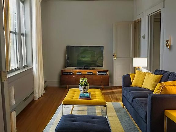 Welcome home! Discover this cozy 1.5-bedroom apartment featuring beautiful wood floors, granite counter tops, renovated bathroom and ample natural sunlight throughout the apt. The versatile small room is perfect for working from home or extra storage space. Convenient acces to Schools, Parks, Shopping areas, Restaurants, Bus and Light Rail. Minutes away from Staten Island and NYC. Excellent Location!!