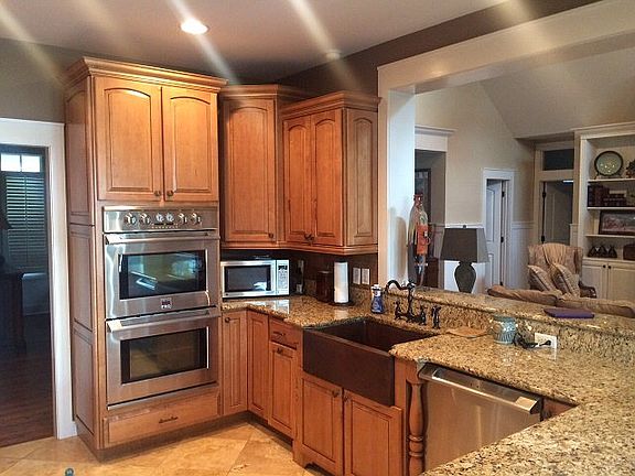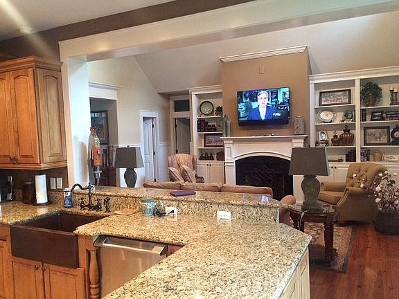 Stacked stone & concrete board finish with mahogany-rain water glass front door. Pine flooring & travertine tile throughout with industrial type carpet in media rm which has tiered seating & is wired for advanced surround sound & projector. Granite counter top in kit. Kenmore Pro SS appliances. Copper Farm style sink with European style Dansk faucets.Gas logs in F.P.Storage under house & attic. Oversized garage with openers.Whole house audio for TV & music in Gar,Kit,Bath. Library is other room.