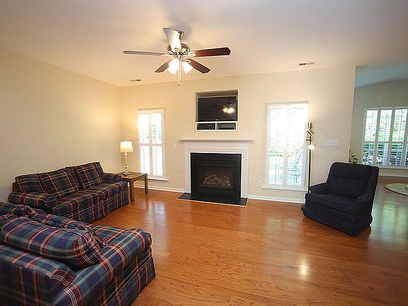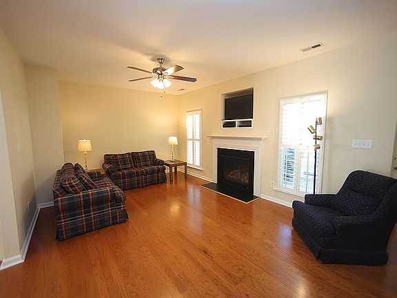 Welcome to this delightful bright and spacious 3 bedroom, 2.5 bath + morning room townhome with a 2 car garage! Elegant true hardwoods grace the entire first floor. Large kitchen with moveable island makes meal prep a breeze. Gourmet kitchen with builtin oven and microwave has a spacious corner pantry. You'll especially love the plantation shutters and all the natural light. The conveninet patio is ideal for grilling is surrounded by luscious greenery, offering lots of privacy. The freplace in the family room adds character and warmth! Upstairs you'll find a large primary bedroom with room for sitting. The primary bath with dual vanity, soaking/garden tub and separate shower is also bright and airy. Lovingy maintained home with newer HVAC (2020) and water heater(2020) HOA replacing roofs in '25-26 at their expense. Enjoy the neighborhood pool and amenities! Terrific location. Better hurry!