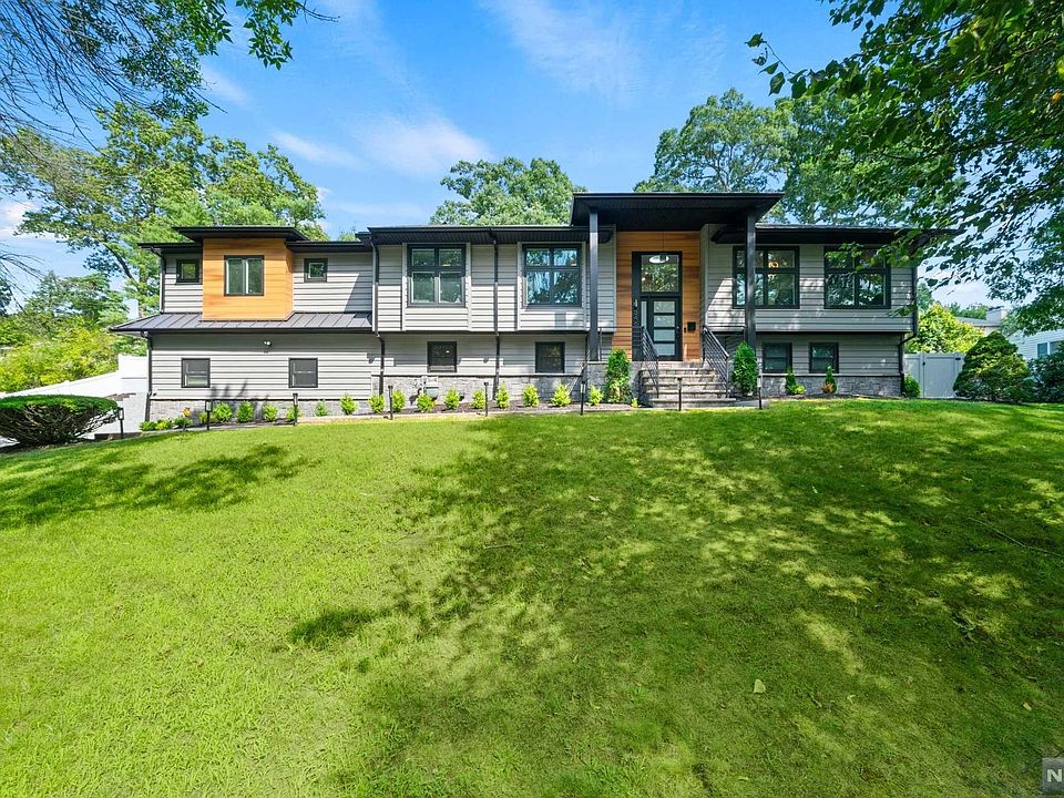 The Modern contemporary design, carefully curated with top-notch finishings, is perfect for the most discerning buyer. You'll adore the open-concept living area with its sleek linear fireplace wall and custom built-ins, enhanced by gorgeous marble flanking. The gourmet kitchen, sparkling white with gold hardware accents, presents a center island with waterfall quartz countertops, a gas cooktop, and a gourmet oven - a culinary dream. The master suite offers views of the pool and ensuite bath, a luxury sanctuary with a massive shower, a free-standing soaking tub, and radiant floor heating. A generous bedroom with a full bathroom on the ground level makes the perfect guest suite. Nestled serenely at the end of a tranquil cul-de-sac in the sought-after Paramus neighborhood, this property is sure to exceed all expectations.