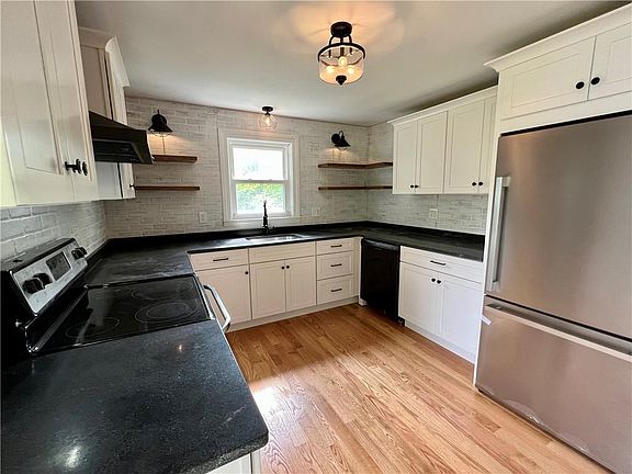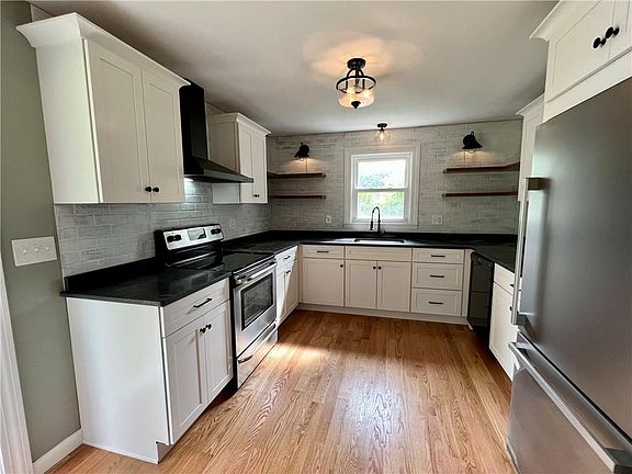 Fully Renovated Sun-Filled 3-bed, 1.5 bath Cape on nicely hidden corner lot. This home is concealed by mature trees and a lush landscape! It features a brand new farmhouse style kitchen with stainless appliances, newly renovated baths and hardwood flooring throughout first floor. Freshly painted in new designer colors, this home has an exceptionally open feel. Updates also include, new windows, lighting fixtures, carpet, flooring, plumbing, new electrical service, exterior, landscaping and newer roof. Large finished basement area with walk-out access to a patio area. Great for an Office or Rec Room! Driveway accessible on side street (Dixon street).