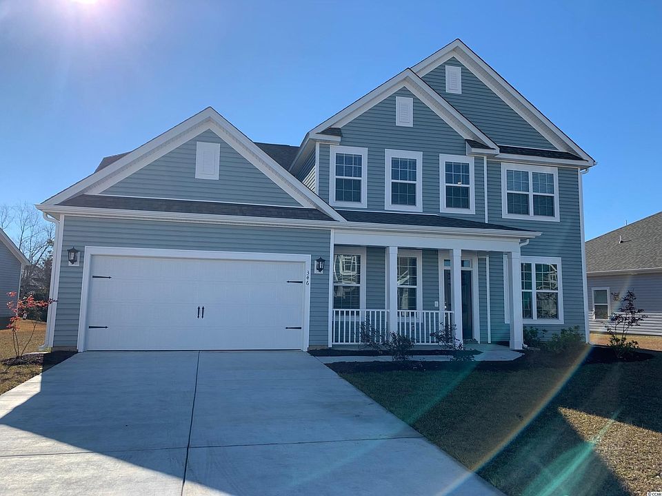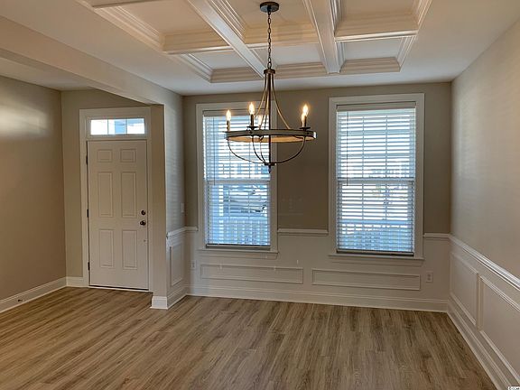 This awesome Ivey home will be finished in December-Jan timeframe. 4 Bedrooms (2 on the first level), a loft, formal dining room, open kitchen to the great room, and a covered porch. The Ivey boasts a welcoming front porch, a bright and inviting foyer, a spacious kitchen and butler's pantry with crisp white cabinets by Master Brand, Progress Lighting Staunton pendants over the large kitchen Island, Stainless Steel Whirlpool appliances (Side-by-side refrigerator with ice/water in the door, natural gas range, microwave over-the-range vented to the exterior, and dishwasher), granite counter tops, easy maintenance Mohawk REV Wood flooring, Daltile tile in each of the 3 full baths and the laundry room, and upgraded Mohawk carpet in the loft and bedrooms 2, 3, and 4. The formal dining room is a perfect space to host a dinner party with its coffered ceiling, chair rail, and picture molding. The large primary bedroom is located on the first floor and features Mohawk REV Wood flooring, a fantastic walk-in tiled spa shower with a rain showerhead and wall showerhead, a dry off bench, a double vanity, and 2 overly generous walk-in closets. Brushed nickel Moen plumbing fixtures and Progress Lighting in the galvanized Gulliver collection are a lovely accompaniment throughout the home. This home boasts everything you need to be move-in ready; a Whirlpool washer/dryer, faux wood window blinds, a lawn irrigation system, a natural gas Rinnai tankless water heater, gutters, attic storage over the 2-car garage, a concrete patio off the covered porch, and a fully sodded home site with foundation trees and shrubs. All Belle Mer homes are Energy Star Certified to create a more comfortable home at a lower utility cost. Belle Mer offers a premier location between Murrells Inlet and Myrtle Beach, just 2.5 miles to the public beach accesses in Surfside Beach. You can ride your golf cart to 3 large shopping and dining venues. Belle Mer also features amenities galore; a community pool, clubhouse, exercise room, fishing and non-motorized boating lakes, and sidewalks throughout. DISCLOSURE: Photos are of the decorated Ivey showcase/model home; options and included features in this home will vary.