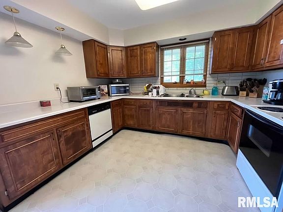 Prime location! Situated in a friendly small town neighborhood with easy access to the local school and park, this 3 bedroom and 2 full bath all-brick home has so much to offer! The main level features a spacious 15x23 living room with wood burning fireplace, dining room with patio doors that lead out to the 10x16 wood deck, all kitchen appliances convey, full bath has a large vanity and jetted tub, all 3 bedrooms have brick walls, large closets and ceiling fans and there is a 13x14 open landing area that is currently being used as an office area with stairs leading to basement. Lower level includes a massive 17x26 recreation room with wet bar, wood burning fireplace and the pool table conveys. There is also a 7x11 mudroom, 6x11 full bath and 11x12 storage room and 1-car garage in the lower level. Other features include; large yard with long driveway for plenty of extra parking, new drywall on main level and crown molding trim added, many rooms have exposed brick walls, roof is approx. 7 years old, new carpet on exterior stairs, new carpet in some bedrooms, new doors in basement and shed conveys.