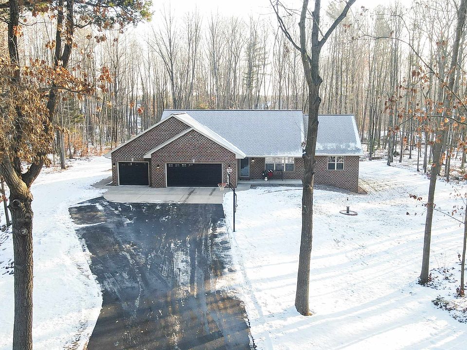 Welcome to this 4 BR, 2.5 Ba Ranch home with over 2400+/- SF of living space. Situated on a 1.51+/- acre wooded lot is this amazing open concept, split floor plan in Hogan Hills that is ready to go. Enter under the covered porch and into the LR w/vaulted ceiling that looks through to the Kitchen Island and to the back deck. Kitchen has walk in pantry w/ full appliance package. Doors leading from kitchen to deck that overlooks a wooded lot. Main level primary bedroom with vaulted ceiling, walk in closet and en-suite bath. 2 additional sizable bedrooms and full BA. Main floor laundry & half bath completes main flr. LL w/ family room, and additional NEW 4th BR, stubbed for add’l bath. 4 egress windows lead to unlimited possibilities. Attached 3.5 car heated garage and a 10X16 storage shed.