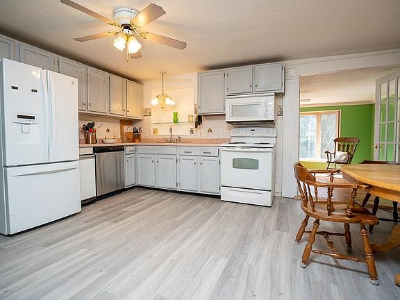 Move in Ready to this 6 room 3 Bedroom Ranch. Open floor plan, Freshly painted living room includes new flooring, ceiling fan, and a picture window over looking front yard. Kitchen has eat in area with new flooring and includes all the appliances. 3 bedrooms have hard wood floors. Kitchen leads through french door to open family room on the back of the house .Family room includes built in wall air conditioner, newer flooring and large window and small deck that over looks 3/4 acre private back yard. Finished, walk out remodeled basement, sectioned off to exercise area, office or family game room. Gas forced air heating system, insulated windows, additional storage area in basement. Home is locate in a private area of 16 acres.
