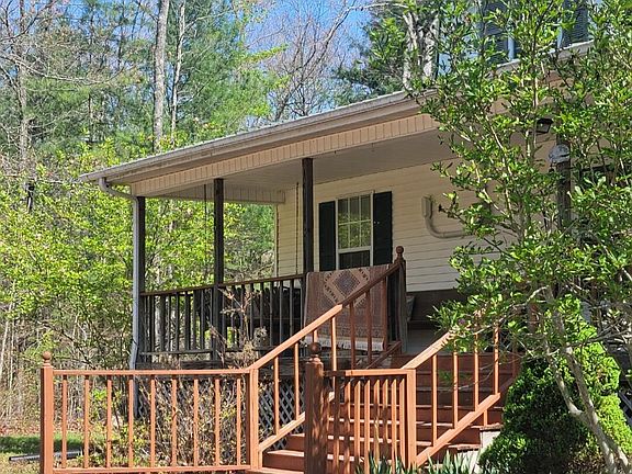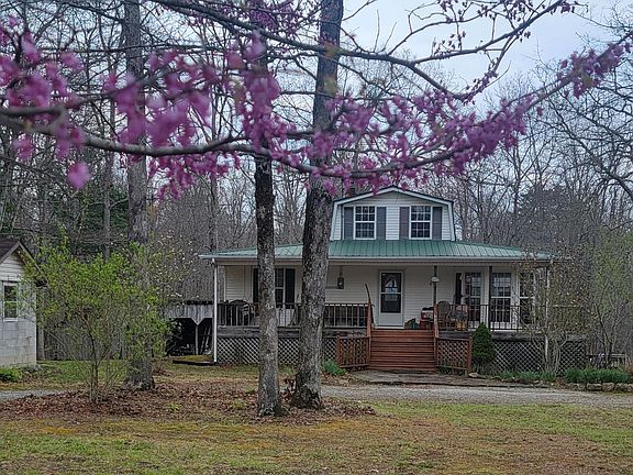 Possible small farm or ranch! Back on the market no fault to the home. The gardener in you will be excited when you see this property! The cleared 3 acre yard includes a greenhouse with well water connected to it, perennial flowers, a pumphouse, 3 bay tractor barn, 8 foot tall blueberry bushes, mature peach and persimmon trees and a fenced in garden! There's also a beautiful year round creek with fish that runs alongside the 9 plus acre property. The home's welcoming covered front porch wraps around to the side door of the kitchen which is connected to a breakfast nook with a beautiful bay window. In the back of the house a new sun porch is right out the door of the master suite that includes a jacuzzi tub and a sauna!! On the main floor is also another bedroom and bathroom. All of the gutters have been recently replaced with leaf free gutters. Two adjoining rooms upstairs would make a perfect craft room and office, a bedroom with a nursery or even a child's bedroom combo playroom. The kitchen has brand new granite counter tops, subway tile and large sink. Come and enjoy the gorgeous, quiet country setting!