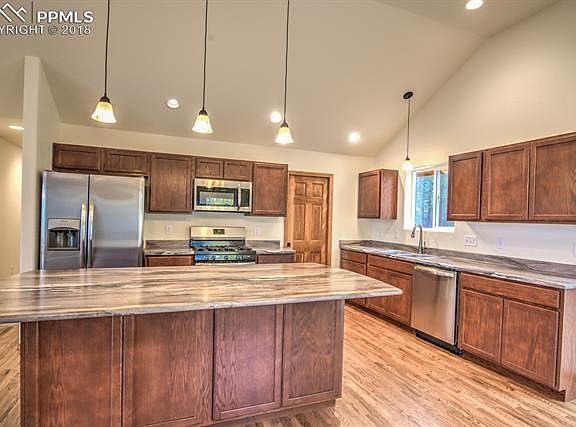 Brand new beautiful mountain home projected to be finished in August. You still have some opportunity to pick some of your colors. Semi-custom home with extravagant beam detail that is rarely seen any more in Teller County. Nice views to the West of Thirty-Nine Mile Mountain. Exterior will be finished in wood, stucco and stone. All three bedrooms are located on the main floor. Another bedroom could be added in the lower level family room if needed or wanted. Vaulted ceilings throughout the living room, kitchen and dining area. Excellent cabinet and countertop space in the kitchen with huge island and walk-in pantry. Upgraded remote control gas fireplace in living room with rock surround. Real hardwood flooring in the living areas of the main floor. Nice sized master bedroom with walk in closet and oversized walk in shower. Composite decking in the front with steel powder coated hand rails and spindles. Massive garage will hold two full size trucks and plenty of toys. Furnace is 96% efficient, running off natural gas really keeps the utility costs down. Nice variety of trees and a nice sunny lot.