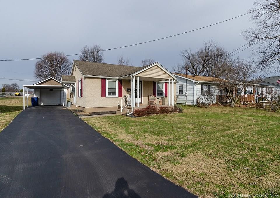 Charming Stucco exterior cottage style home in Sellersburg. Two bed one bath with eat in kitchen. Also features a detached garage with carport, paved driveway, gazebo, fire pit, and swing. In the rear of the property you will find a detached living space (studio/In-law suite) with one bed, one bath, living room, and kitchen. The studio could possibly be used for extended family, Air B&B/rental, office, storage, workshop, small business, or be converted to an 18x20 garage. Studio has it's own parking area via alley access. Home is within walking distance to local schools, churches, parks, and dining. Everything major has been remodeled within the last 8-10 years. Roof, HVAC, wiring, plumbing, windows, interior and exterior were all addressed during remodel. This well-kept, total electric home has low utilities and low taxes. Call/text for your private showing today!