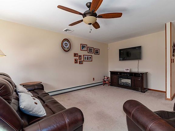 - LIVING ROOM FEATURES: Wall to Wall Carpet, Ceiling Fans, Balcony/Deck