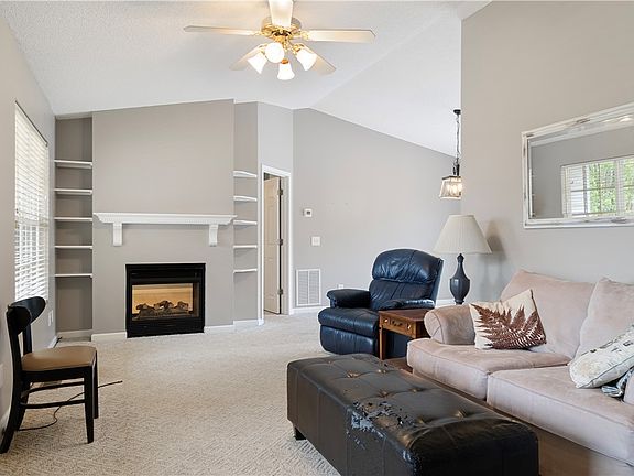 - Bookcases, Built-in Features, Ceiling Fan(s), Cathedral Ceiling(s), Dual Sinks, Fireplace, High Ceilings, Bath in Primary Bedroom, Main Level Primary, Solid Surface Counters, Skylights, Tub Shower, Walk-In Closet(s), Walk-In Shower, Window Treatments, Breakfast Area