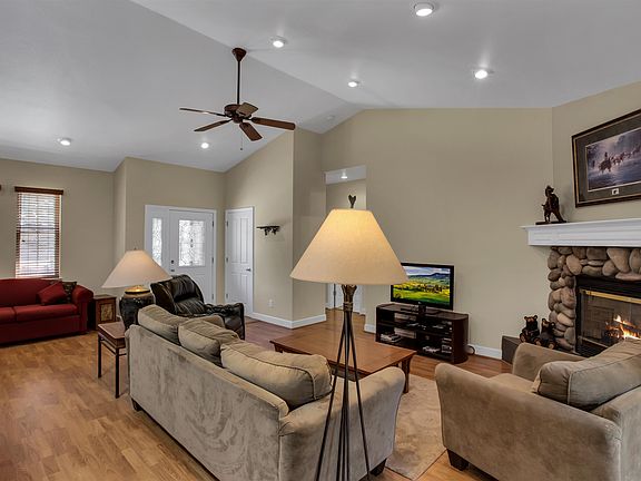 Welcome to your new home. Walk into a large family room with a gas log fireplace for those chilly evenings. Bedrooms are spacious and private with the primary bedroom on one side and guest bedrooms on the opposite side, great floorplan. The large primary bedroom with en-suite has a spa tub and separate shower, walk in closet and double vanity. Open the slider from the primary bedroom onto a covered deck area to enjoy your coffee while listening to Midora Creek that runs behind the home. All one level with room for your friends and family. Two car garage, utility room, forced air propane furnace... so much is here and waiting for you! Golf at Plumas Pines, hike the lakes basin, biking, Pickle Ball, shop in downtown Graeagle, or just enjoy the peace and quiet and sound of the breeze in the towering pines. Be sure to check out the virtual tour link.