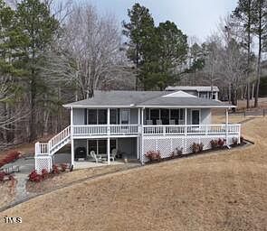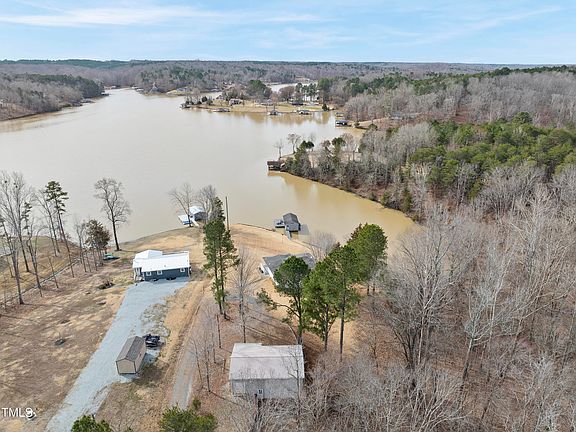 Experience breathtaking, unobstructed wide open views of Hyco Lake from this charming, updated home. This lakefront property features 2 bedrooms, 2 baths, and an office, with an open-concept kitchen that flows seamlessly into the spacious living room. Enjoy the single-slip dock on warm sunny days. The garage room beneath the house has ample storage space and could possibly be turned into additional living area. The expansive oversized garage out back includes a heated and cooled room, ideal for a game room, kids' sleeping quarters, or a craft/storage area. Home has encapsulated crawlspace, wifi thermostat, whole house water filtration and electric fireplace. Dishwasher 3 yrs old, refrigerator and stove replaced this year and home has new water pressure tank. A must-see to truly appreciate the endless possibilities! All furniture and appliances stay with property. Great Neighbors. NO COVENANTS!